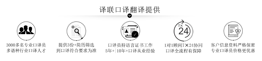 廣州譯聯翻譯公司10年在口譯翻譯中積累成長,已擁有2000名簽約的陪同翻譯老師,陪同翻譯老師都有著自己多年的工作經驗和擅長的領域專業,譯聯翻譯根據客戶需求和陪同翻譯員的特色、優勢為您提供領域專業匹配的優質陪同翻譯員,讓客戶不再為選擇不到合適的陪同翻譯發愁。