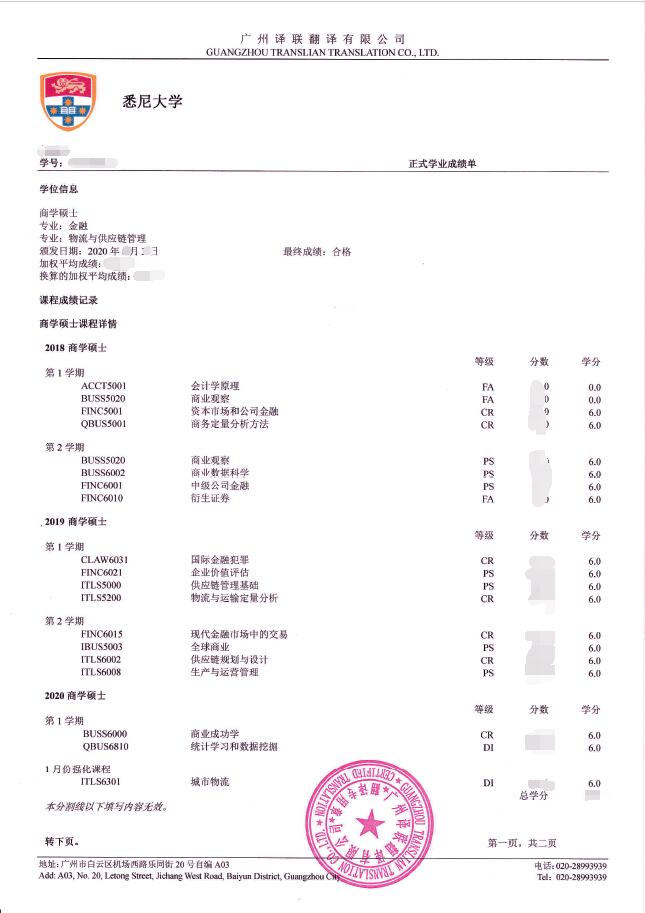 留學歸國用的成績單也要進行排版,譯聯翻譯機構在成績單翻譯排版方面,會根據客戶原件的樣式進行排版,保證除了內容需要翻譯外,其他格式均與原件對照一致,讓客戶提交的翻譯件能夠更加美觀,也便于審核,具體留學歸國成績單翻譯模板如下: